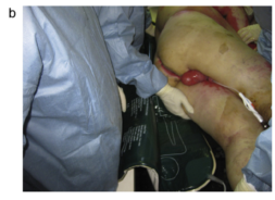 图3 由两组人员进行手术 由两组人员进行筋膜切开术,Mega 2000负极板回路垫同时支持两个高频电刀器械,可以大大减少手术时间。
