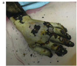 我们在烧伤护理部门对入院收治的11名患者(4名女性,7名男性)使用了负极板回路的,由于四肢有环形深层热损伤,我们做了疤痕切除手术(n=9),有两个病例做了胸壁瘢痕切开术以解除胸壁运动的限制。总的来说,患者在我们的烧伤科住院期间,有67名大面积烧伤的患者(28名女性,39名男性)使用了负极板回路垫。该器械在所有病例中都运作良好,没有发现患者身上有额外的皮肤烧伤(见图3)。